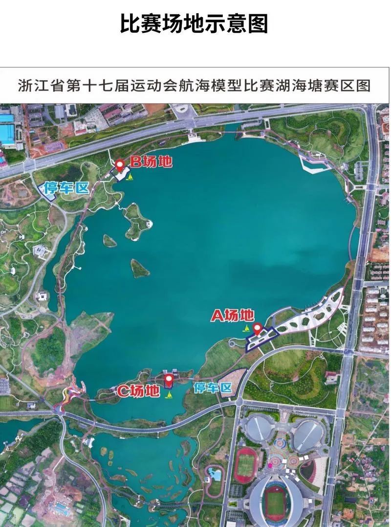 航海模型比赛分为A、B、C、D四个赛区,在金华开发区湖海塘公园和东苑小学同时进行,湖海塘公园A、B、C三个赛区环湖设置,东苑小学设有D赛区。