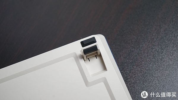杜伽FUSION左上角的黑底银字DURGOD,除了在键盘正面担任logo,其实还内藏玄机。logo底下做了阶梯差设计,轻按右侧就可以把logo整个掀起来。打开才发现,原来是磁吸设计,并将2.4G接收器藏在里面。发现巧妙的设计往往让人精神一震,码字的时候如果困了,我也会按着logo玩一会。